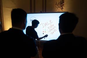 (251215) -- BUENOS AIRES, 15 diciembre, 2025 (Xinhua) -- Un empleado muestra el uso de una pantalla interactiva con panel...