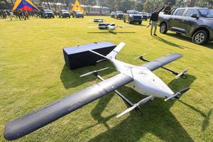(251216) -- QUITO, 16 diciembre, 2025 (Xinhua) -- Drones de reconocimiento y equipos tecnológicos son vistos durante la ceremonia de...