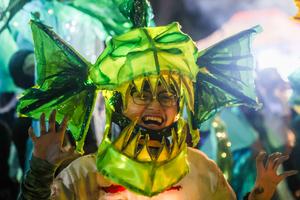 (251217) — CIUDAD QUEZON, 17 diciembre, 2025 (Xinhua) — Un estudiante disfrazado marcha con linternas de colores durante el Desfile de Linternas anual en la Universidad de Filipinas, en Ciudad Quezón, Filipinas, el 17 de diciembre de 2025. (Xinhua/Rouelle Umali) (jg) (da) (vf)