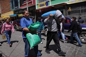(251218) -- LA PAZ, 18 diciembre, 2025 (Xinhua) -- Personas acuden a un centro de abasto para adquirir alimentos, en...