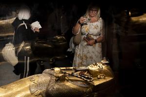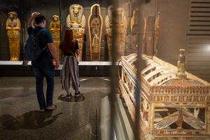 (251221) -- GIZA, 21 diciembre, 2025 (Xinhua) -- Imagen del 20 de diciembre de 2025 de personas observando el Ataúd...