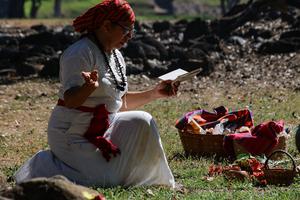 (251221) -- SAN SALVADOR, 21 diciembre, 2025 (Xinhua) -- Una mujer indígena participa en una ceremonia maya por la celebración...