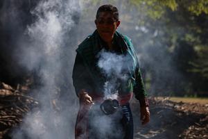 (251221) -- SAN SALVADOR, 21 diciembre, 2025 (Xinhua) -- Un hombre indígena participa en una ceremonia maya por la celebración...