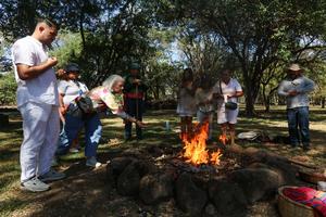 (251221) -- SAN SALVADOR, 21 diciembre, 2025 (Xinhua) -- Personas participan en una ceremonia maya por la celebración del Solsticio...