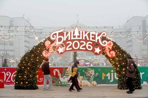 (251224) -- BISHKEK, 24 diciembre, 2025 (Xinhua) -- Imagen del 23 de diciembre de 2025 de personas caminando frente a...