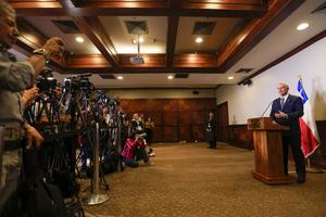 (251223) -- QUITO, 23 diciembre, 2025 (Xinhua) -- El presidente electo chileno, José Antonio Kast, habla durante una conferencia de...