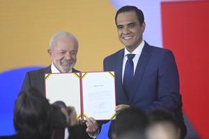 (251223) -- BRASILIA, 23 diciembre, 2025 (Xinhua) -- El presidente brasileño, Luiz Inácio Lula da Silva (i), y el nuevo...
