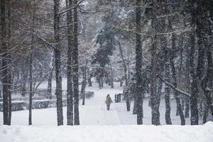 (251223) -- CHANGCHUN, 23 diciembre, 2025 (Xinhua) -- Una ciudadana camina en medio de la nevada, en Changchun, en la...