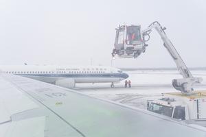(251223) -- HARBIN, 23 diciembre, 2025 (Xinhua) -- Trabajadores realizan operaciones de deshielo y remoción de nieve a una aeronave...