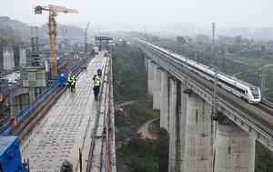 (251225) -- CHONGQING, 25 diciembre, 2025 (Xinhua) -- Constructores trabajan en el sitio de construcción de un puente a lo...