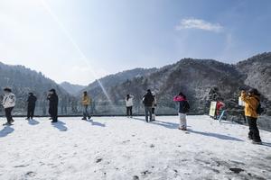 (251225) -- HANGZHOU, 25 diciembre, 2025 (Xinhua) -- Turistas disfrutan del paisaje después de la nevada en el área escénica...