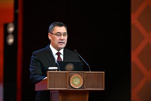 (251226) -- BISHKEK, 26 diciembre, 2025 (Xinhua) -- Imagen del 25 de diciembre de 2025 del presidente kirguís, Sadyr Japarov,...