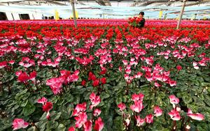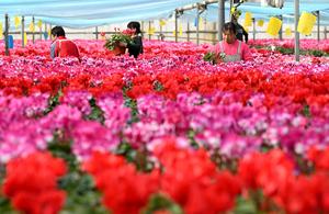 (251130) -- SHIJIAZHUANG, 30 noviembre, 2025 (Xinhua) -- Floricultores seleccionan flores para su empaque y entrega en una base de...