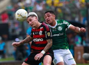 (251130) -- LIMA, 30 noviembre, 2025 (Xinhua) -- Imagen de 29 de noviembre de 2025 del jugador Vitor Roque (d),...