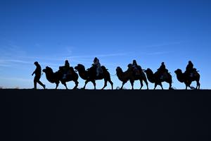 (251130) -- BEIJING, 30 noviembre, 2025 (Xinhua) -- Turistas visitan el Area Escénica de la Montaña Mingsha y el Manantial...