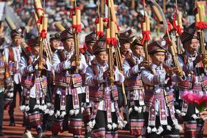 (251130) -- NANNING, 30 noviembre, 2025 (Xinhua) -- Imagen del 29 de noviembre de 2025 de artistas tocando el Lusheng,...