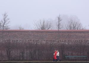 (251212) -- VIENA, 12 diciembre, 2025 (Xinhua) -- Personas visitan el Jardín del Belvedere en medio de una densa niebla,...