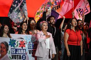 (251211) -- SANTIAGO, 11 diciembre, 2025 (Xinhua) -- Imagen del 10 de diciembre de 2025 de simpatizantes de la candidata...