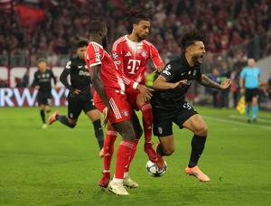 (251210) -- MUNICH, 10 diciembre, 2025 (Xinhua) -- Imagen del 9 de diciembre de 2025 de Dayot Upamecano (i) y...