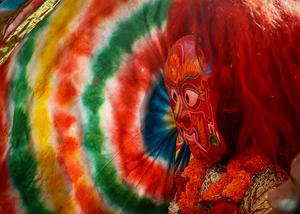 (250907) -- KATMANDU, 7 septiembre, 2025 (Xinhua) -- Imagen del 6 de septiembre de 2025 de un bailarín enmascarado realizando...