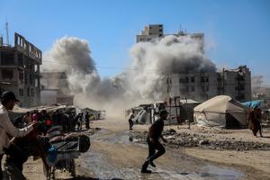 (250908) -- GAZA, 8 septiembre, 2025 (Xinhua) -- Humo se eleva desde la torre "Vision" tras un ataque aéreo israelí,...