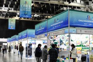 (250908) -- SANTIAGO, 8 septiembre, 2025 (Xinhua) -- Personas visitan el estand de una compañía agrícola china durante la inauguración...