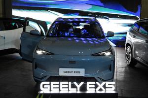 (250908) -- SANTIAGO, 8 septiembre, 2025 (Xinhua) -- Visitantes observan un automóvil de la marca china Geely durante la inauguración...