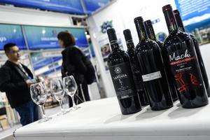 (250908) -- SANTIAGO, 8 septiembre, 2025 (Xinhua) -- Personas visitan un estand de vinos chilenos durante la inauguración de la...