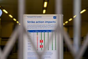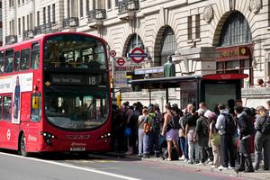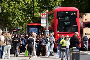 (250908) -- LONDRES, 8 septiembre, 2025 (Xinhua) -- Pasajeros se trasladan a otros modos de transporte en una parada de...