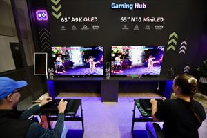 (250906) -- BERLIN, 6 septiembre, 2025 (Xinhua) -- Imagen del 5 de septiembre de 2025 de personas probando dispositivos de...