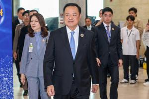 (250907) -- BANGKOK, 7 septiembre, 2025 (Xinhua) -- El nuevo primer ministro de Tailandia, Anutin Charnvirakul, saluda a funcionarios después...