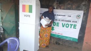 (251229) -- CONAKRY, 29 diciembre, 2025 (Xinhua) -- Imagen del 28 de diciembre de 2025 de una votante preparándose para...