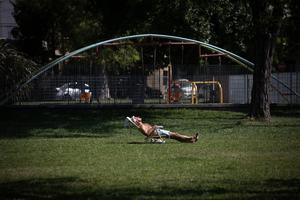 (251229) -- BUENOS AIRES, 29 diciembre, 2025 (Xinhua) -- Un hombre descansa bajo el sol en un parque durante una...