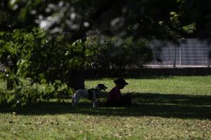 (251229) -- BUENOS AIRES, 29 diciembre, 2025 (Xinhua) -- Una mujer y su perro descansan en un parque durante una...