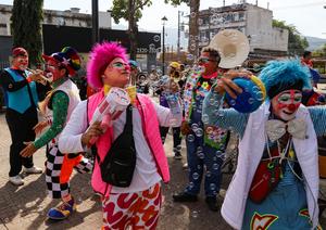 (251203) -- SAN SALVADOR, 3 diciembre, 2025 (Xinhua) -- Payasos participan en un desfile durante la celebración del Día Nacional...