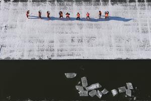 (250130) -- RAFAH, 30 enero, 2025 (Xinhua) -- Imagen del 28 de enero de 2025 de camiones de ayuda esperando...