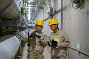 (260101) -- BEIJING, 1 enero, 2026 (Xinhua) -- Personal de operación y mantenimiento de cables de State Grid Nanjing Power...
