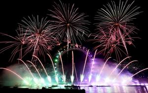 (260101) -- LONDRES, 1 enero, 2026 (Xinhua) -- Fuegos artificiales explotan frente al Ojo de Londres en celebración del Año...