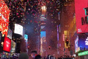 (260101) -- NUEVA YORK, 1 enero, 2026 (Xinhua) -- Personas asisten a un evento de celebración de Año Nuevo en...