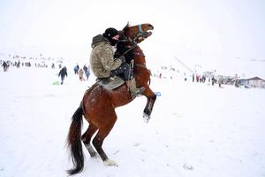 (260102) -- ANKARA, 2 enero, 2026 (Xinhua) -- Imagen del 1 de enero de 2026 de un hombre montando a...