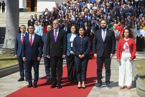 (260105) -- CARACAS, 5 enero, 2026 (Xinhua) -- El presidente de la Asamblea Nacional de Venezuela, Jorge Rodríguez (2-i-frente), participa en una ceremonia después de una sesión en el Palacio Federal Legislativo, en Caracas, Venezuela, el 5 de enero de 2026. Rodríguez aseguró el lunes que utilizará todas las instancias y espacios disponibles para lograr el regreso del jefe de Estado, Nicolás Maduro, y de la primera dama, Cilia Flores, capturados el pasado sábado por fuerzas armadas estadounidenses. (Xinhua/Marcos Salgado) (ms) (oa) (ah) (vf)