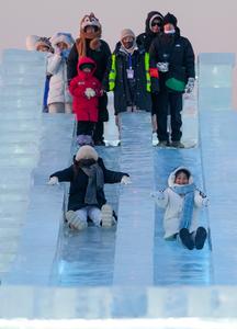 (260106) -- HARBIN, 6 enero, 2026 (Xinhua) -- Imagen del 1 de enero de 2026 de un niño divirtiéndose durante...