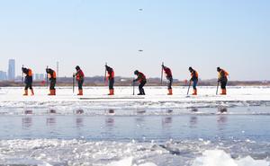(260106) -- HARBIN, 6 enero, 2026 (Xinhua) -- Imagen del 9 de diciembre de 2025 de trabajadores recogiendo hielo en...