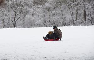 (260107) -- LA HAYA, 7 enero, 2026 (Xinhua) -- Un hombre y un niño disfrutan pasear en trineo por la...