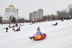 (260107) -- MOSCU, 7 enero, 2026 (Xinhua) -- Personas disfrutan deslizarse en trineo por la nieve en un parque, en...