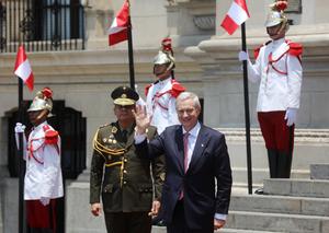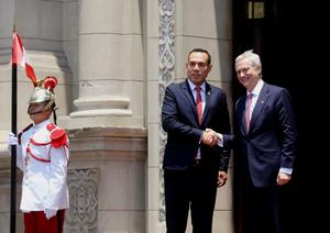 (260107) -- LIMA, 7 enero, 2026 (Xinhua) -- El presidente peruano, José Jerí (c), estrecha la manco del presidente electo...