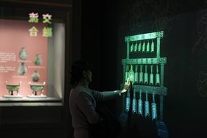 (260109) -- JINAN, 9 enero, 2026 (Xinhua) -- Una mujer visita una exposición sobre la cultura de las antiguas tribus...