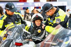 (260110) -- BEIJING, 10 enero, 2026 (Xinhua) -- Un niño prueba una motocicleta policial, en Tianjin, en el norte de...