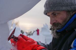 (260110) -- HARBIN, 10 enero, 2026 (Xinhua) -- Imagen del 9 de enero de 2026 de un concursante ruso creando...
