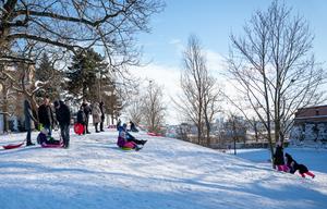 (260112) -- PRAGA, 12 enero, 2026 (Xinhua) -- Imagen del 11 de enero de 2026 de personas jugando a deslizarse...